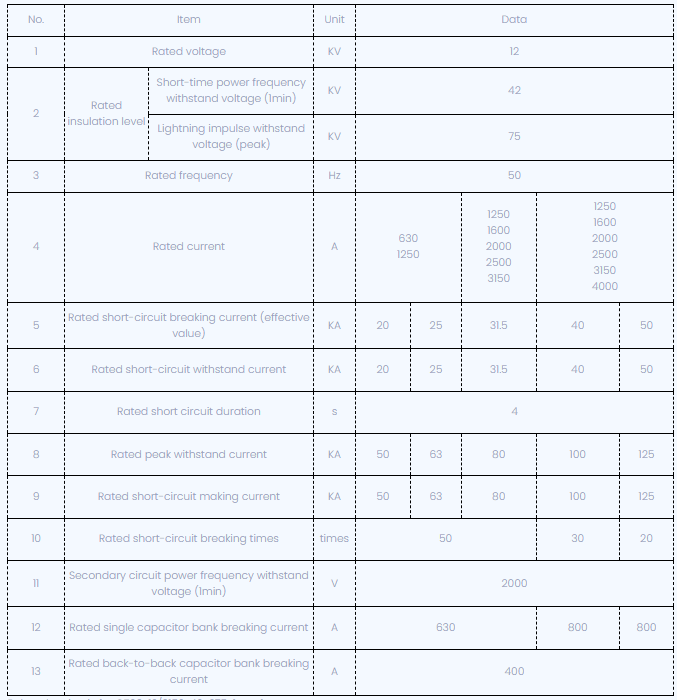 Características del interruptor de circuito de vacío CT68-12