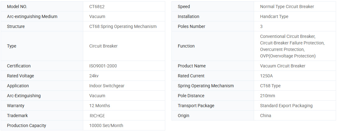 El interruptor de circuito de vacío CT68-12 tiene una estructura simple, alta capacidad de ruptura, larga resistencia, funciones operativas integrales, sin peligro explosivo y mantenimiento conveniente. Es apto para controlar el sistema de transporte y proteger el interruptor en la subestación de potencia y transformador, especialmente ajustado para romper una carga importante o operaciones frecuentes en algunos lugares.
