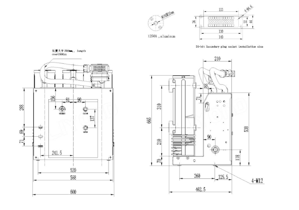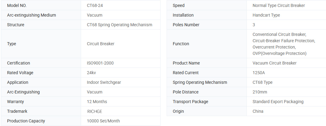 Modelo CT68 -24 Circuito de vacío interior Uso con mecanismo de operación de resorte CT68. Es un equipo de ditribución de potencia interior de CA trifásica, 50 Hz con el voltaje de 24kV.