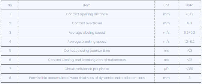 Después de ajustar el disyuntor, los parámetros característicos mecánicos se muestran a continuación: