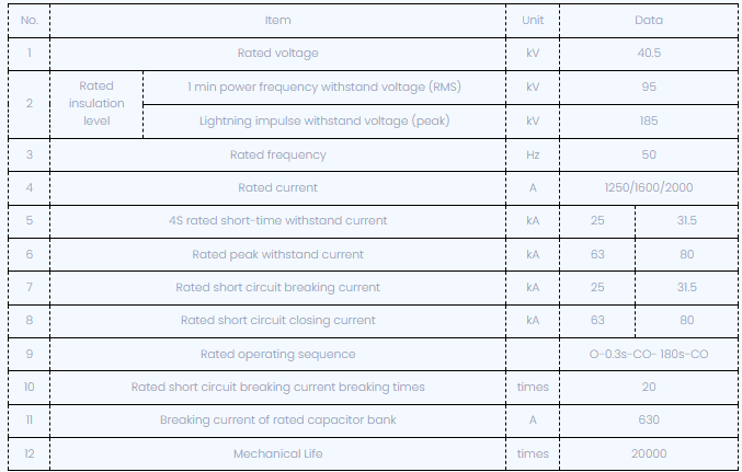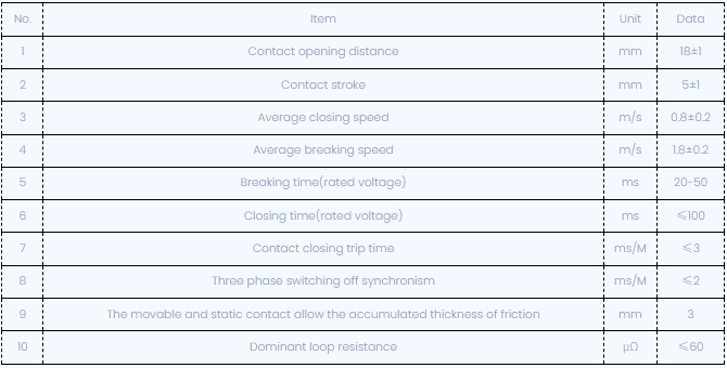Después de ajustar el disyuntor, los parámetros característicos mecánicos se muestran a continuación