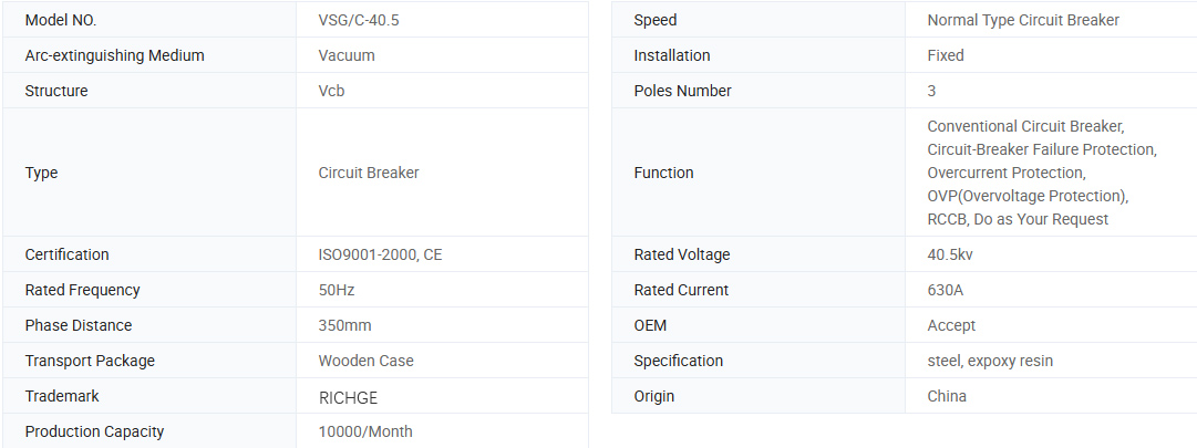 VSG-C/40.5 Instalación lateral de tipo INSTALACIÓN DE CIRCUITO DE VOCUMA DE VOLTAJE INTERRADO Utilizado el resorte a la energía de almacenamiento. El mecanismo operativo se puede operar de dos maneras, por operación manual y electromotriz, las características están de acuerdo con el interruptor de circuito de CA de alto voltaje de GB1984-2003, JB3855-1996 3.6-4.5kV AC AC ACHE Voltaje Circuito de COC Circuito estándar 62271-100: 200162271-100: 2001 Circuito de circuito de CA de alto voltaje de alto voltaje de alto voltaje