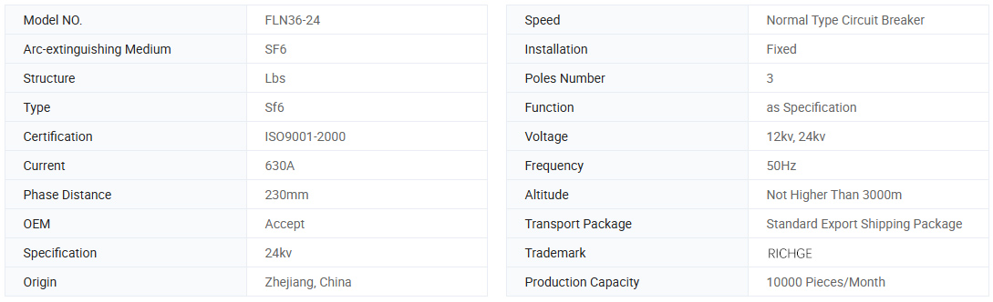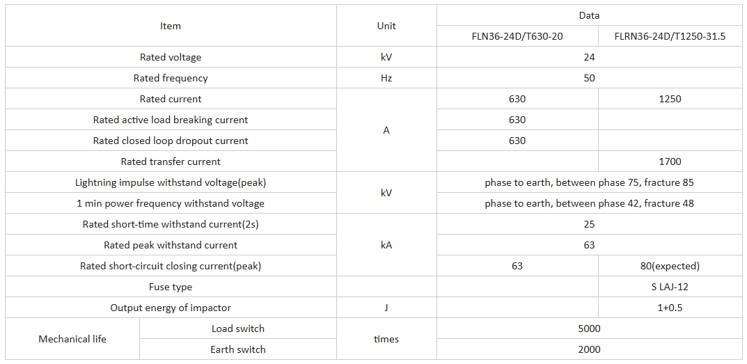 Se puede dividir en dos tipos: FLN □ -24kV (mecanismo de operación de resorte único tipo k), FLRN □ -24KV (un mecanismo de operación de doble resorte). El último tipo podría estar equipado con combinación de fusibles, que tiene una función de control y protección, que puede usarse para la fuente de alimentación y la subestación como un dispositivo de protección y control, especialmente adecuado para la unidad principal del anillo, la caja de distribución de cables y la subestación de conmutación.