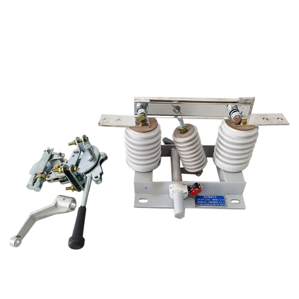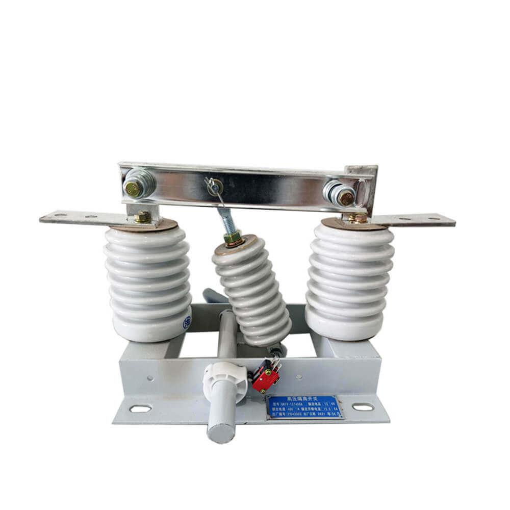 Esta serie de interruptores de aislamiento es un tipo de tres polos, que consiste en un chasis, un eje giratorio, una palanca, un aislante de pilar de porcelana, un cuchillo y un tablero de cableado. El eje giratorio está dispuesto en el marco inferior, en el que se soldan tres pares de palancas, y las palancas pasan a través del aislador de porcelana de la varilla y el collar de cuchillo. El eje giratorio se extiende fuera del marco base, y cualquier sección del eje giratorio se puede conectar con el mecanismo de funcionamiento.