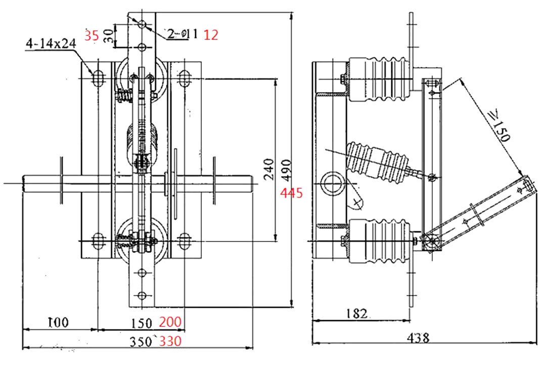 El interruptor de aislamiento de esta serie está equipado con un mecanismo operativo manual CS6-1 (el interruptor de aislamiento con un panel tiene su propio mecanismo operativo unido).