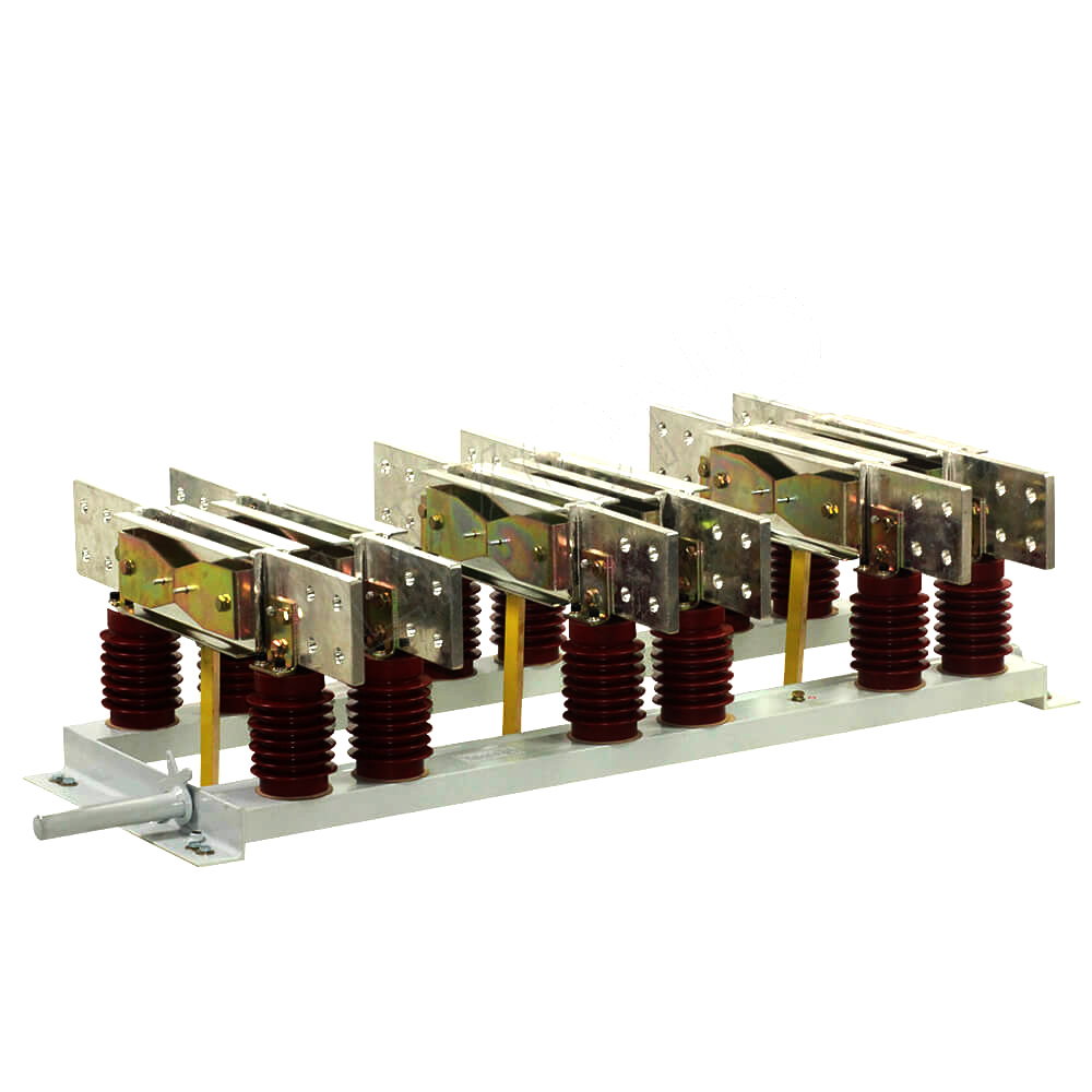 Este producto es un interruptor de aislamiento de alta corriente con una estructura de cuchillo de fondo común trifásica. Adopta un prototipo de bloqueo mecánico con una acción de dos pasos de cierre y contacto, logrando contacto sin desgaste, pequeña fuerza operativa, alta presión de contacto y buena estabilidad térmica dinámica.