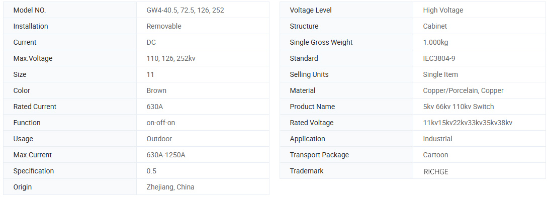 El interruptor de desconexión de alto voltaje de CA GW4-12 (40.5) al aire libre se usa para abrir y cerrar el circuito con voltaje pero sin carga 50/60Hz, 12 (40.5) sistema de alimentación de kV. Acuerda con los estándares del interruptor de desconexión de CA IEC129-1984 AC y el interruptor de la conexión a tierra y el GB1985 y otros estándares relativos.