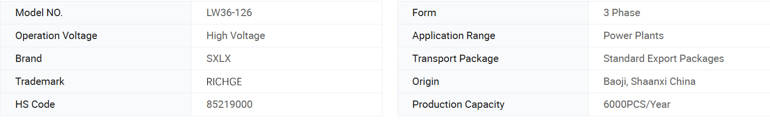 Este producto utiliza el gas SF6 como el medio de extinción de arco y aislante. Está equipado con la última tecnología de extinción de ARC auto-energía y presenta un nuevo mecanismo operado por resorte. El LW36-126/3150-40 ofrece una larga vida eléctrica, bajo esfuerzo de operación, bajo ruido y alta confiabilidad, lo que la convierte en la opción más confiable para áreas de gran altitud o sistemas de energía de 132 kV. También puede reemplazar productos importados del mismo tipo.