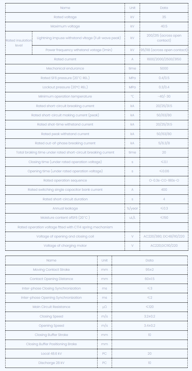 El interruptor de circuito SF6 de AC SF6 LW8 (A) -40.5 es un dispositivo eléctrico trifásico de alto voltaje exterior de 50 Hz diseñado para usar en sistemas de energía con un voltaje nominal de 40.5 kV.