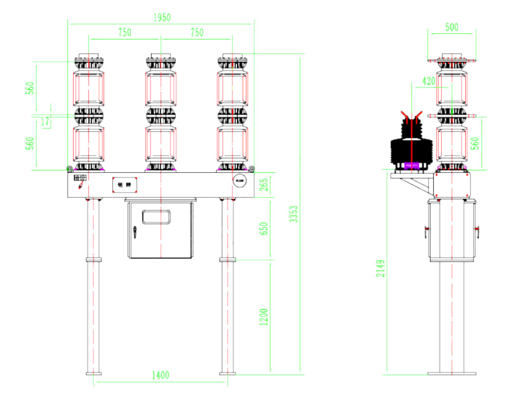 El producto tiene un excelente rendimiento de ruptura, utiliza la cámara de extinción de arco de aire a presión, la vida eléctrica es larga, no reemplaza el gas hexafluoruro de azufre, la confiabilidad mecánica es alta, la vida mecánica es larga, puede funcionar con frecuencia; Cada conjunto se puede equipar con 6-12 transformadores actuales para la elección del usuario. Este producto adopta el nuevo medidor de densidad del puntero MKZ Modelo SF6, la lectura del manómetro de presión no se ve afectada por el cambio de temperatura, fácil de usar.