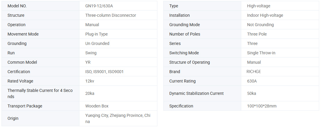 El interruptor de aislamiento de alto voltaje de CA para interiores de la serie GN19-12(c) es adecuado para sistemas de alimentación de CA de 50 Hz, voltaje nominal de 12 kv y menos. Está equipado con un mecanismo de operación manual CS6-1 y se utiliza para interrumpir y crear circuitos sin carga. Hay tipos adicionales de contaminación, tipos de gran altitud y tipos de indicación de potencia. Está fabricado según IEC 62271-102. Se utilizan para cambiar aparatos eléctricos en condiciones de voltaje pero sin carga. También se envían para producir dispositivos de tipo antiincrustante, tipo meseta y de visualización en vivo que se pueden instalar. El interruptor de aislamiento de alto voltaje para interiores de la serie GN19-12 es un dispositivo para interiores con voltaje nominal de 12 kv y CA trifásico de 50 hz.