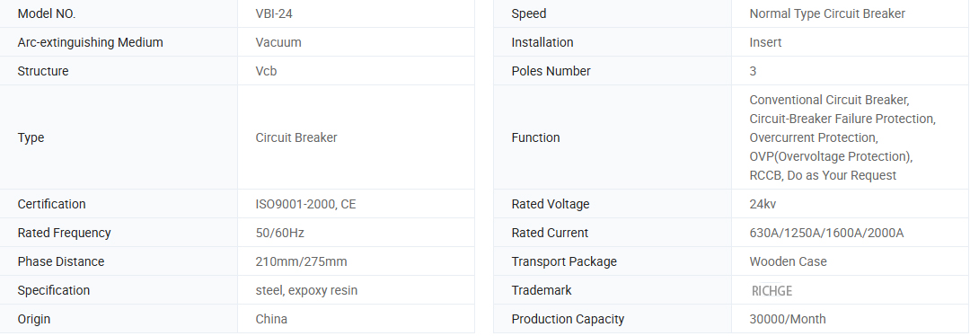 La serie VBI-24 de interruptores de circuito de vacío de alto voltaje interior con postes integrados es tres frases de equipo de distribución de energía interior de A.C.50 Hz con el voltaje nominal de 24 kV.it utilizado para proteger y controlar los equipos eléctricos en los campos de la industria y la empresa minera, las plantas de energía y la subestación.