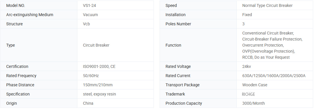 La serie VS1-24 de interruptores de circuito de vacío de alto voltaje interior con cilindro aislado común es un equipo de distribución de potencia interior de 5O Hz de tres frases a.c. Se utiliza para proteger el control del egumento eléctrico en los campos de la industria y la empresa minera, las centrales eléctricas y las subestaciones. Este tipo de interruptores de circuito de vacío se ajusta a los estándares nacionales y la estipulación del estándar IEC, la capacidad alcanza el grado de M2-E2-C2.