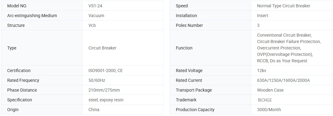 La serie VS1-24 de interruptores de circuito de vacío de alto voltaje interior con cilindro aislado común es un equipo de distribución de energía interior de tres frases a.c. 50 Hz con el voltaje nominal de 24kV. Se utiliza para proteger el control de los equipos eléctricos en los campos de la industria y la empresa minera, las centrales eléctricas y las subestaciones. Este tipo de interruptores de circuito de vacío se ajusta a los estándares nacionales y la estipulación del estándar IEC, la capacidad alcanza el grado de M2-E2-C2.