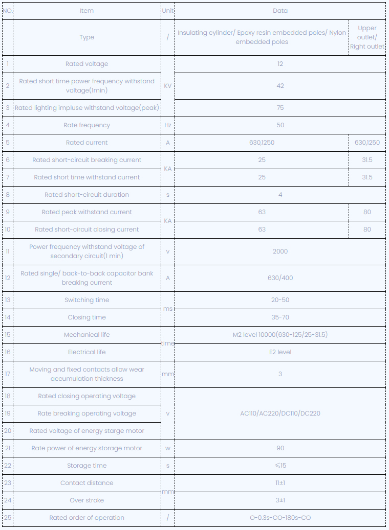 VSG-12C El interruptor de vacío de alerta de alto voltaje interior de alto voltaje es un toque de interruptores interiores y exteriores para un sistema de alimentación de 12kV. Cargas de diferentes naturalezas, operaciones frecuentes y ocasiones en las que la corriente de cortocircuito se rompe varias veces. El producto adopta un nuevo tipo de mecanismo de operación del interruptor de circuito, y la parte principal de VSG-12 puede usar postes internacionales sólidos de marca para sellar el interruptor de vacío y las partes principales del circuito conductor en un todo para proteger el interruptor de la colisión, el polvo y la condensación. Tiene una fuerte adaptabilidad ambiental, reduce en gran medida los costos de operación y mantenimiento, y realmente se da cuenta de la parte única del producto sin mantenimiento y menos mantenimiento del mecanismo operativo. Realizar operaciones frecuentes o romper la corriente de cortocircuito varias veces; La vida mecánica puede ser hasta 30,000 veces, y los tiempos de ruptura de la corriente de cortocircuito de capacidad total pueden alcanzar 50 veces