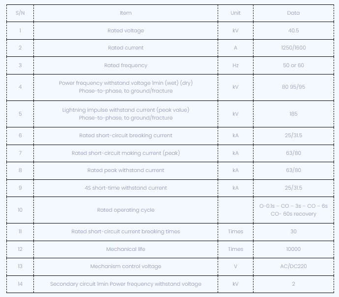 Las características principales del disyuntor son un excelente rendimiento de ruptura, arco de vacío, alta capacidad de ruptura, vida mecánica hasta 10000 veces, estructura simple, libre de mantenimiento y ciclo de mantenimiento largo; Buen rendimiento de aislamiento y una fuerte capacidad anti contaminación; Los transformadores actuales se pueden instalar de acuerdo con los requisitos del cliente, con una precisión de medición del nivel de hasta 0.2, lo que permite la interacción trifásica. Estándar: IEC 62271-100